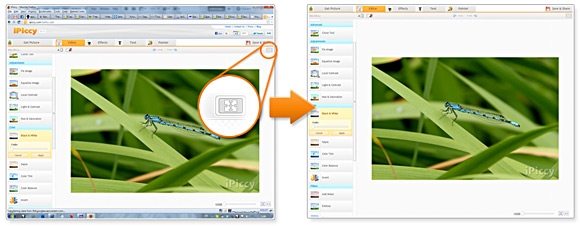 Edit your photos in more comfortable way, and with less distractions. Switch to Full-screen mode.