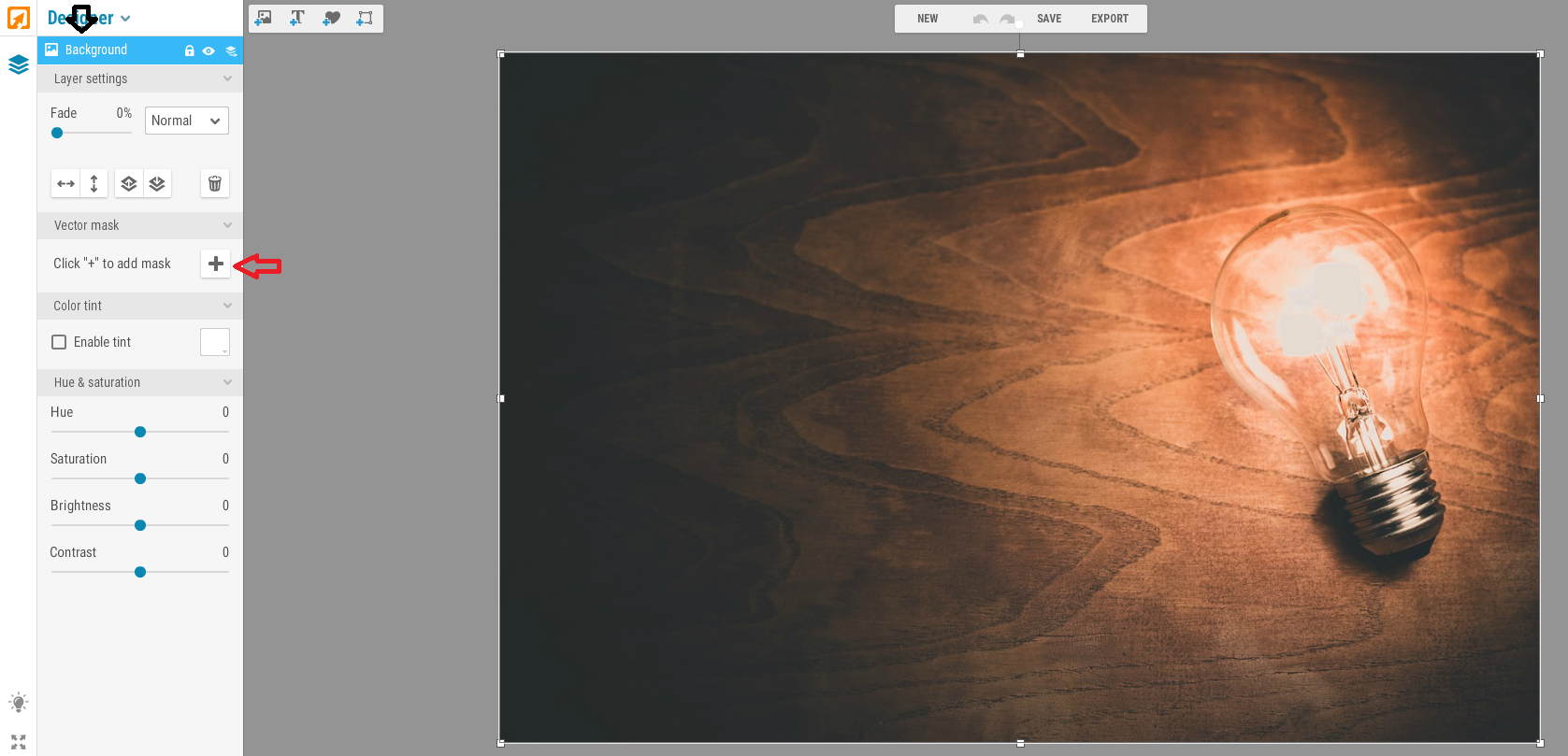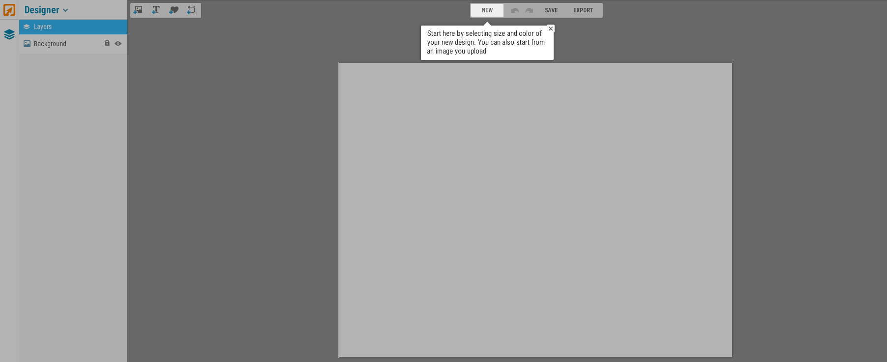 It is the third option when you open iPiccy.com, after you do so the website will then begin to guide you on how to start. It will ask you click on the new button at the top middle.