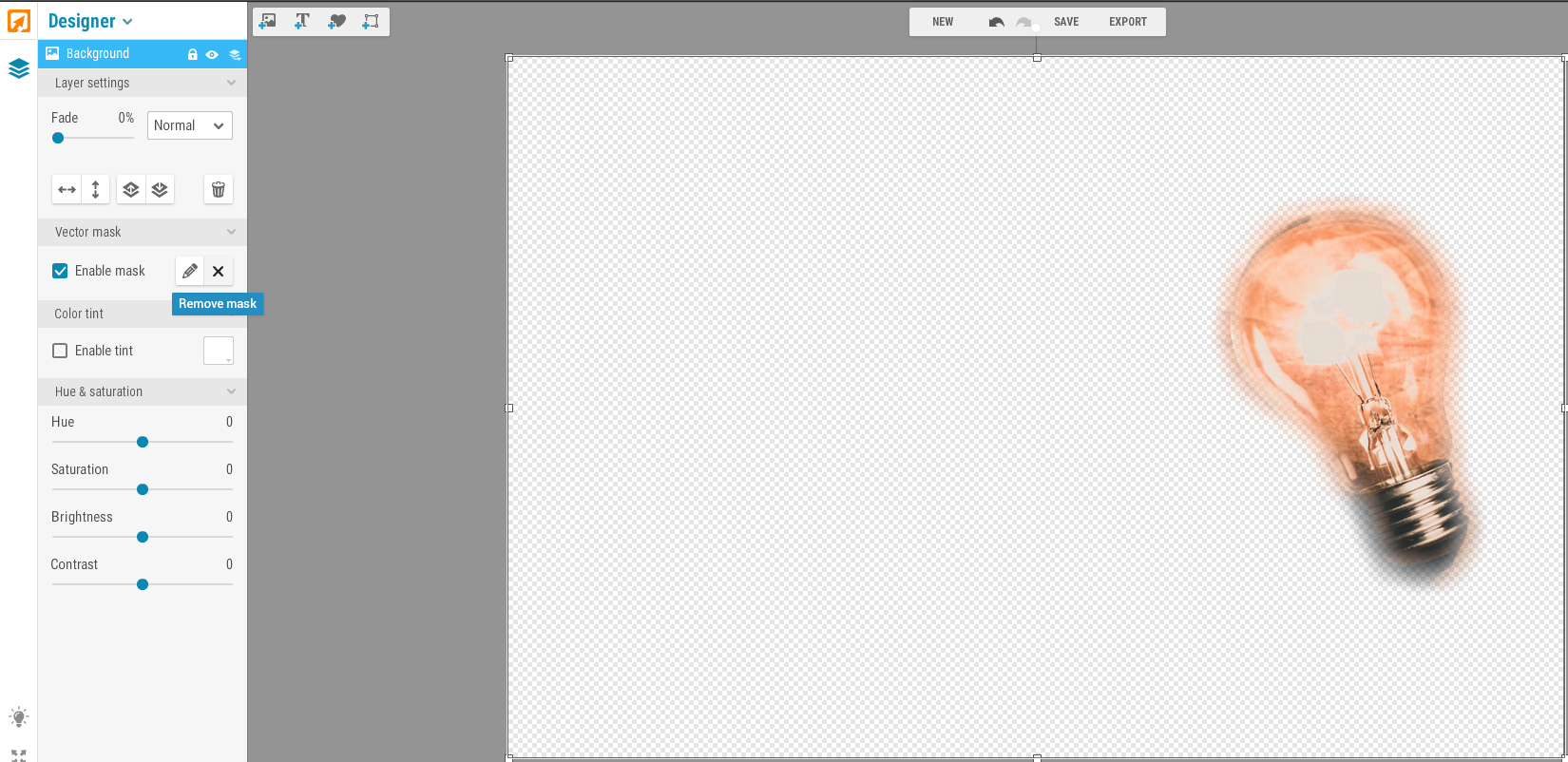 Obviously it would look better if my image wasn’t a lightbulb and was a more interesting object/model. You can save this image or upload a different image and layer it into the background. Thus opening a whole new range of possibilities with silhouettes.